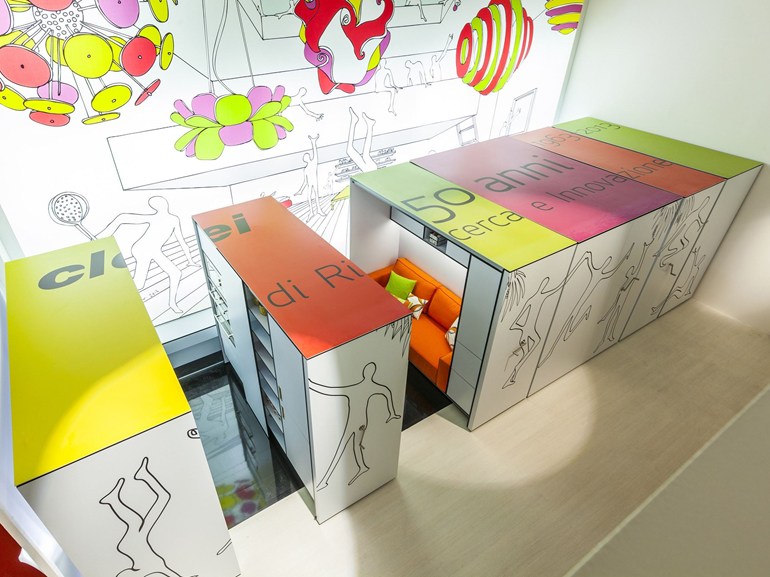 Clei, Italian master of all things space-saving, presented this concept home entitled Elastic Living at the Milan Design Week in celebration of the company’s 50th anniversary. Similar to the Environmental Grantmakers Association office and MIT CityHome concept, Elastic Living slides on a library wall-style track. Each of the seven wall units contain a different “room,” and depending how the walls are opened, you can create several different room configurations.