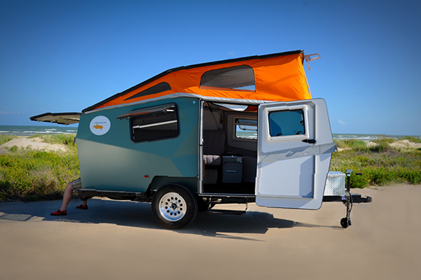 We’ve explored bicycle towed trailers in the past. In particular, the Wide Path Camper seemed like a nice execution of the idea. But as a number of readers noted, it had a couple big liabilities. First, was its weight of 100 lbs. While this is a reasonable weight for a camper, it’s a lot for a human to drag any considerable distance. The next was its high profile, which would catch the wind like nobody’s business. This Micro Airstream bike camper by maker extraordinaire Paul Elkins solves many of these problems, being lighter, sleeker and a lot cheaper than the WPC (or anything else we’ve come across for that matter).